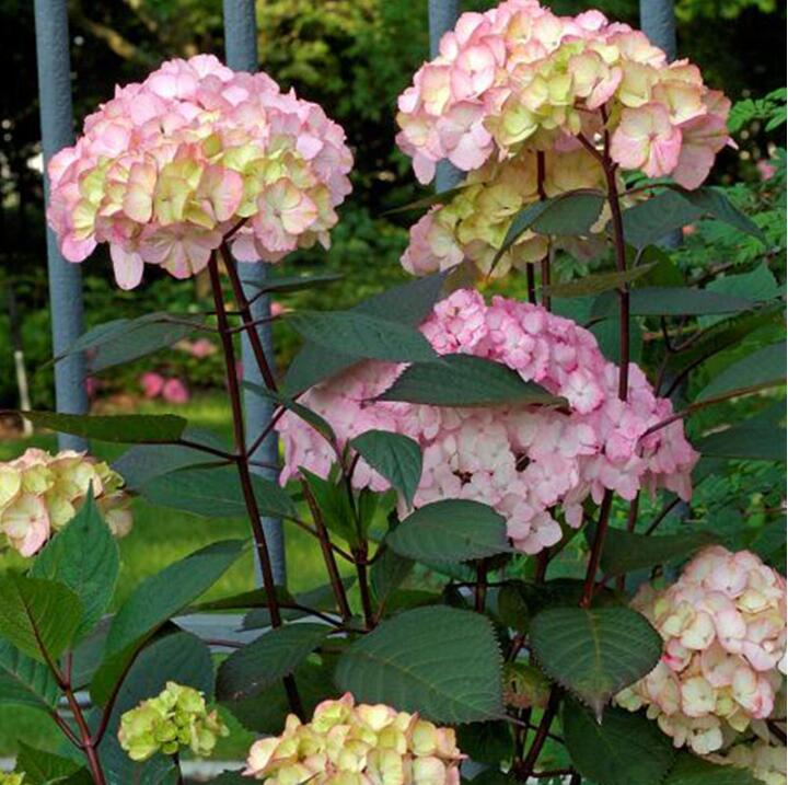 品種特點:可用硫酸鋁與硫酸亞鐵配合調節土壤PH值調色,酸藍鹼紅。新老枝都可開花。