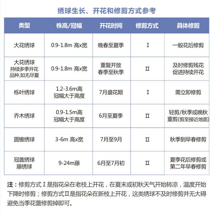 繡球耐寒區在4—9區,每年6-9月開花,品種繁多根據種源及應用環境品種劃分為喬木繡球、大花繡球、圓錐繡球、粗齒繡球、櫟葉繡球還有一些其他花型類似不屬同科的類繡球。