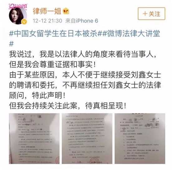 此前在微博上有個號稱“律師一姐”的人,不知是被“道德束縛”、還是站在“制高點”,表示不會再繼續擔任劉鑫的法律顧問。這除了能給劉鑫本就惴惴不安的心理增加更多的負擔之外,還有什麼意義?