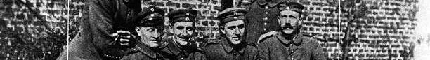 納粹黨領袖,一戰老兵希特勒(坐排最右)。事實上,一戰後的歸國老兵團體不但是德國十一月革命的主要力量,也是納粹黨和自由兵團等激進政治團體壯大自己的主要資源