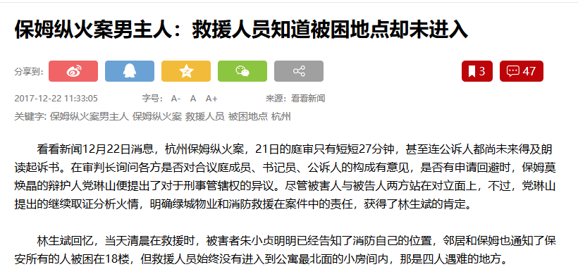 今天看到有媒體採訪受害人家屬,家屬對黨琳山提出的繼續取證分析火情、明確綠城物業和消防救援在案件中的責任表示肯定。當然,家屬之前提出,判處莫煥晶死刑是唯一訴求,相信法庭也會聽到。
