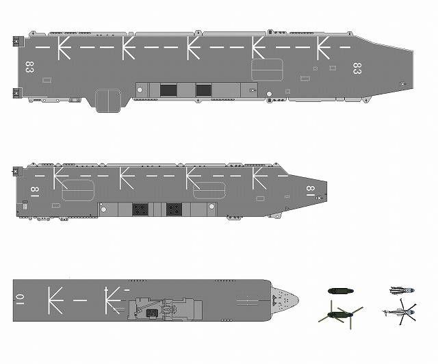 (從上到下)出雲級、日向級、大隅級。雖然前兩級仍稱作DDH,但日本軍事雜誌在文章中都坦承就是直升機航母
