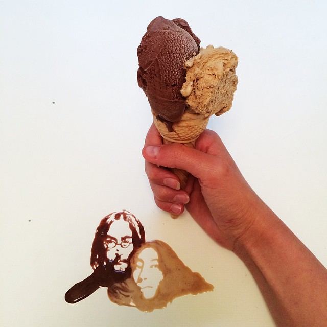 用融化的冰淇淋刻畫的約翰列儂和小野洋子
