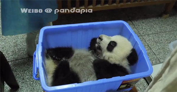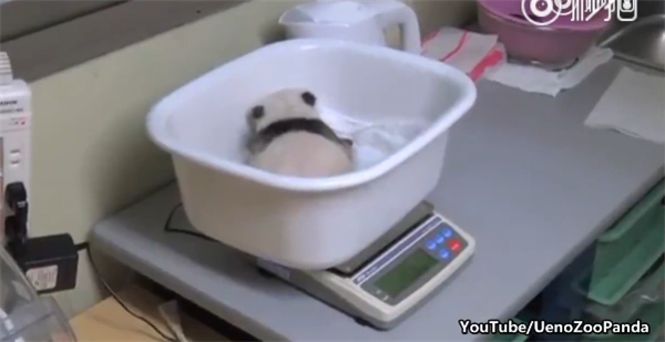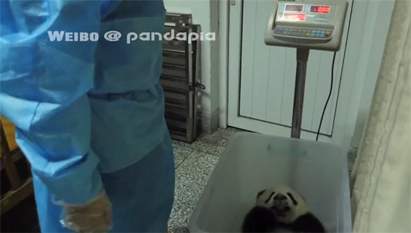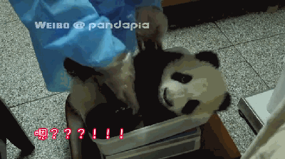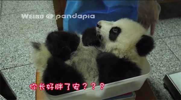 所以,滾滾們稱體重的時候,一般都會用一個小筐兜着,避免他們亂動。
