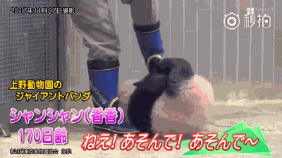 國寶必然是不會乖乖呆在體重秤上的,此時籃筐也已經裝不下了,於是就解鎖了稱重的新姿勢:
