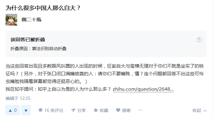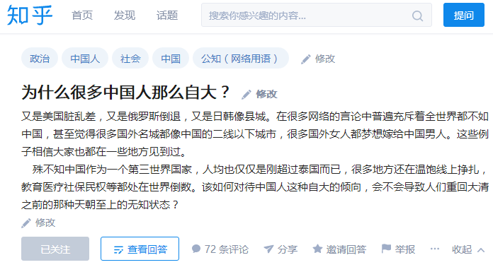 為什麼很多中國人那麼自大? - 平凡人生的回答 - 知乎 https://www.zhihu.com/question/54216957/answer/285316459