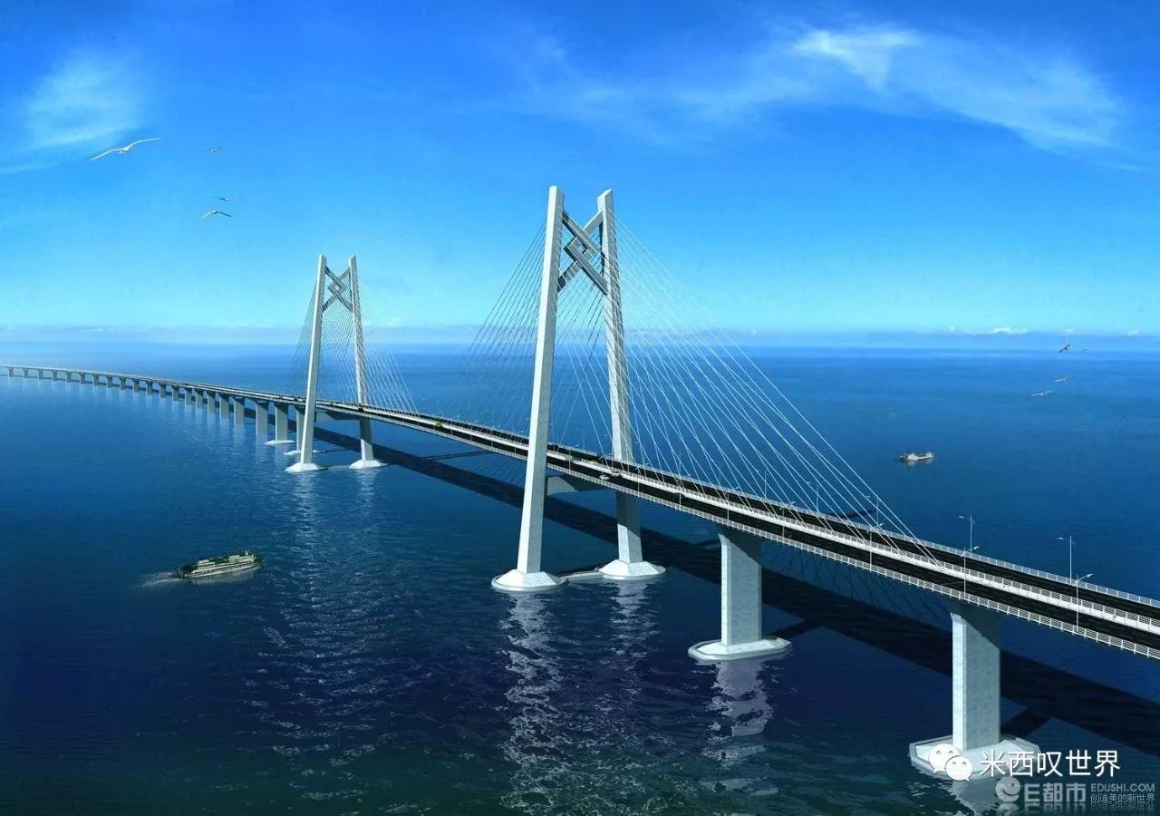 1. 跨越伶仃洋的主橋:全長29.6公里,其中橋樑部分22.9公里,隧道6.7公里隧道,包含5.664公里沉管隧道+東西兩個人工島