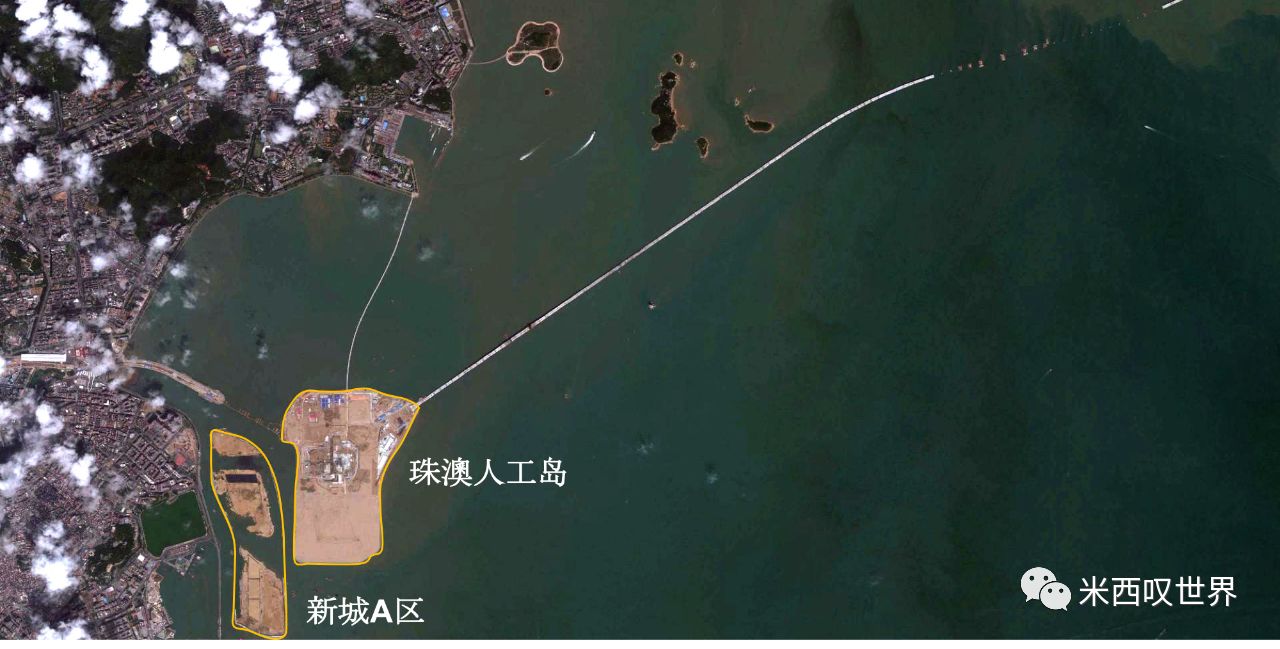 珠澳人工島西側的澳門新城A區還有1/3左右沒完成填海工程
