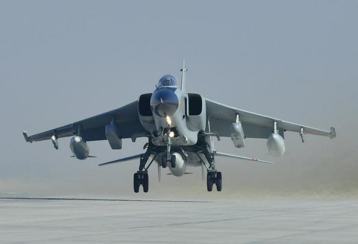 參加演習的殲-8F戰鬥機腹部攜帶了電子對抗吊艙