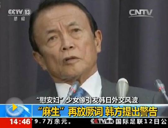 此前央視報道“慰安婦”少女像引發韓日外交風波 視頻截圖