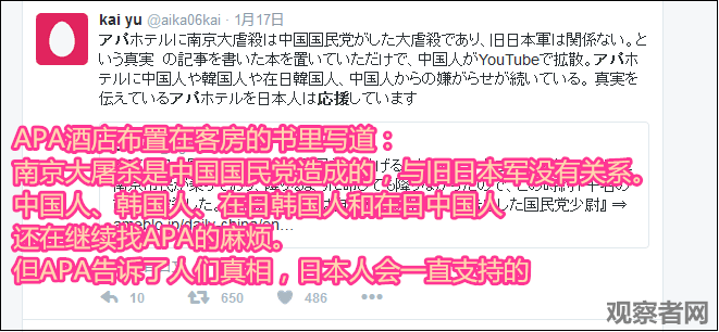 然而,推特上支持APA酒店的日本網民還是佔多數。