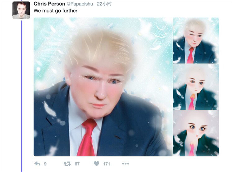 於是推特、臉書,Instagram全部“中毒”了,不論男女老少,都迷上了這種水靈靈的大眼睛,紅撲撲的小臉蛋,然後畫風就集體變成了這樣……