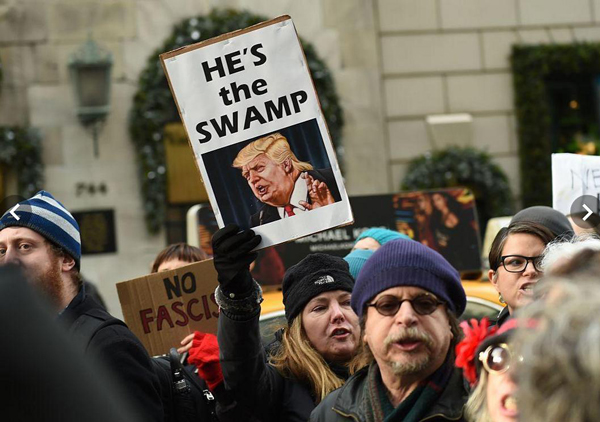 美國現在究竟是什麼制度?在華盛頓抗議的人士對記者説:“我在這裏抗議法西斯主義和選舉特朗普,抗議右翼法西斯主義在西歐和美國的興起”。另有一位抗議者艾立·曼麗告訴美國之音的記者:白人法西斯主義在美國日益抬頭,所以她專程過來抗議。無獨有偶,當美國情報部門披露特朗普有把柄在俄羅斯手裏時,他也把美國比作納粹德國。看來對立雙方都認為美國某種程度是一個法西斯國家。