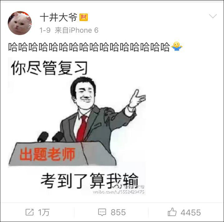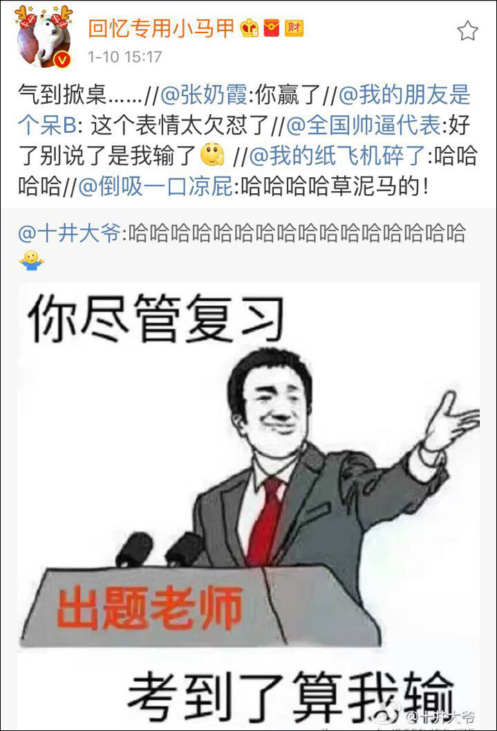 這位“出題老師”最早引起微博網友的注意是在1月9日,原圖由@十井大爺 發出,當天並沒有什麼動靜。