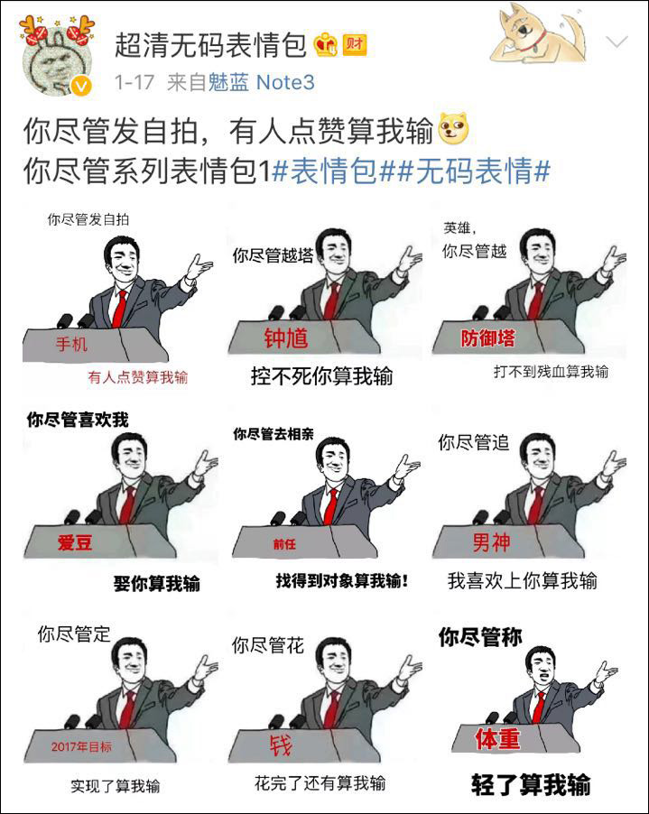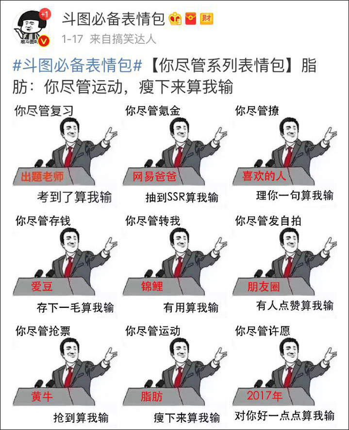 不過要説將這個表情包發揚光大,肯定也少不了下邊這些人的付出。