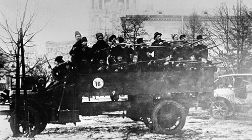 十月革命,武裝紅軍衞隊在一輛卡車上(資料圖)