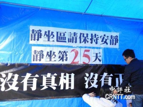 青年黨工用靜坐的方式抗議國民黨對黨產的不當處置