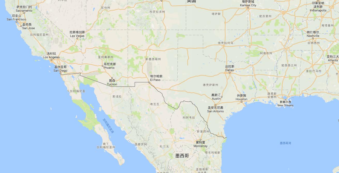 美墨邊境自西向東經過加利福尼亞、亞利桑那、新墨西哥和得克薩斯四個州