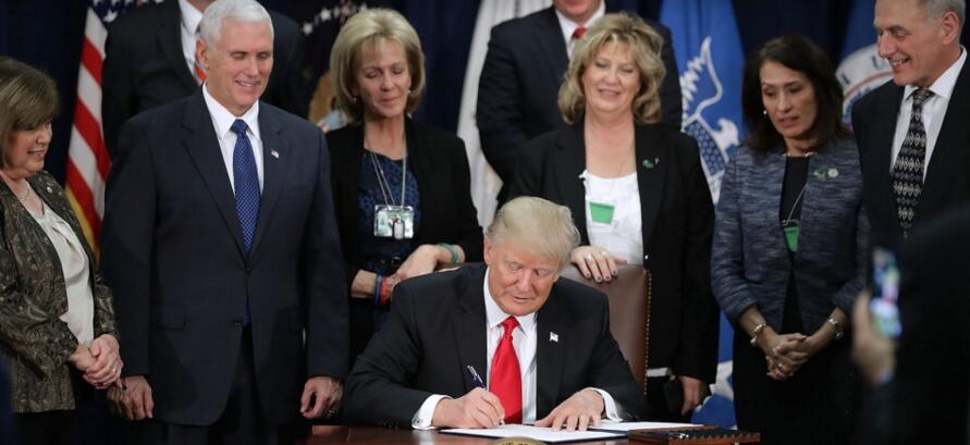 特朗普25日下午前往國土安全部,見證了該部新任部長約翰·凱利的宣誓就職儀式。隨後,特朗普簽署了兩份有關加強邊境安全的行政命令。白宮發言人斯派塞當天表示,兩份行政命令的內容包括在美墨邊境修建隔離牆、停止向難民聚居的城市提供資金支持、加大邊境執法部門的執法力度等。