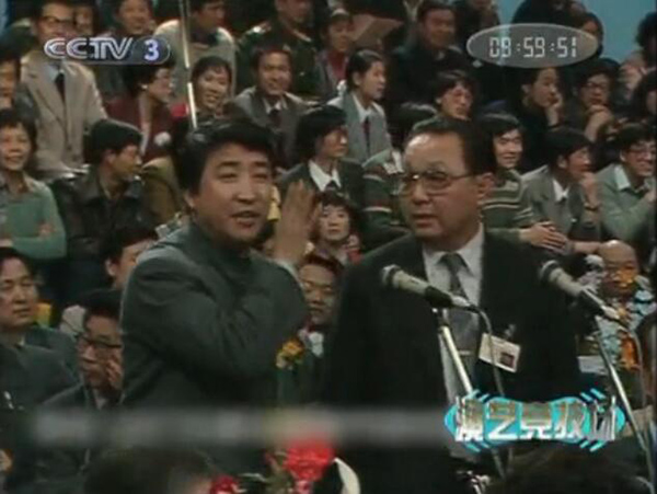 資料圖:1987年春晚,姜昆、唐傑忠表演的《虎口遐想》