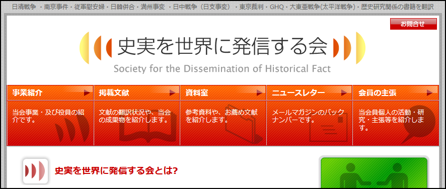 “向世界傳遞史實”協會(史実を世界に発信する會,Society for Dissemination of Historical Fact)是日本一個面向英語世界的民間外宣組織。在該組織介紹中,他們自稱“有感於在英語世界中盛行着大量的反日宣傳”,因此建立該組織從事部分英日書籍的翻譯工作,領域主要涵蓋南京大屠殺問題、日本殖民朝鮮及慰安婦問題、偽滿洲國問題和中日戰爭開戰原因問題。