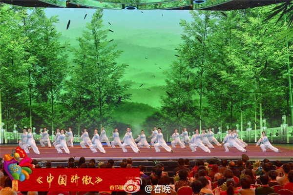 雞年春晚,精彩節目不斷,由80位武術中國、世界冠軍們表演的《中華 》,他們在現場表演拳術、刀術、槍術、真刀真槍真拳表演, 80位運動員,表演了武術比賽項目中的部分項目,刀、劍、棍、槍, 氣吞山河,震撼全場。