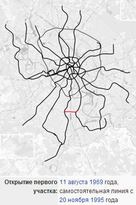 2. 卡霍夫卡線不是1995年開通的,而是當年從2號線分拆出來獨立運作的。以前這條線就是2號線主線的一部分。雖然70年代的第一版“大環線”規劃(目前在建的第二環線不是大環線,而是“第三換乘組合”ТПК)裏面就有想過把原2號線卡霍夫卡支線分拆、併入其中,但這並不意味其規劃原型就是作為大環線的一個部分存在。