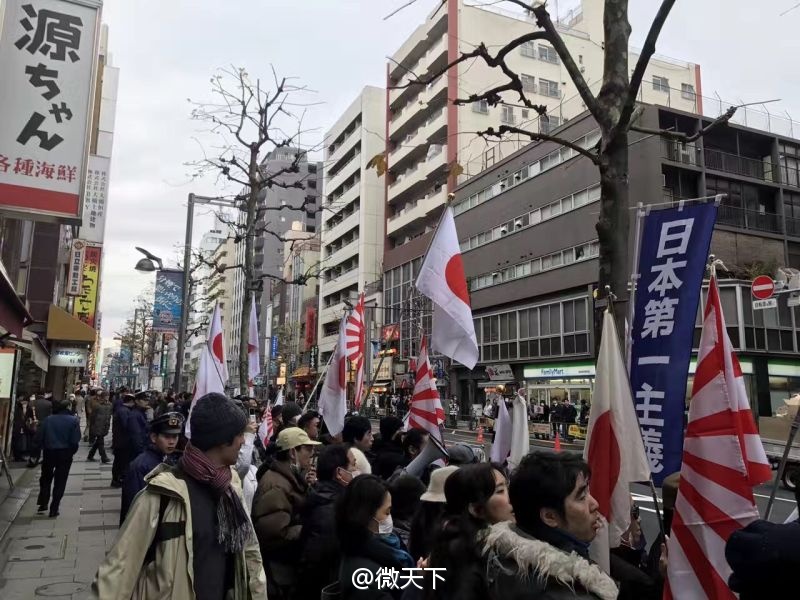 據《環球時報》記者目測,試圖來干擾遊行的日本右翼人士比參與遊行的華人數量要多。