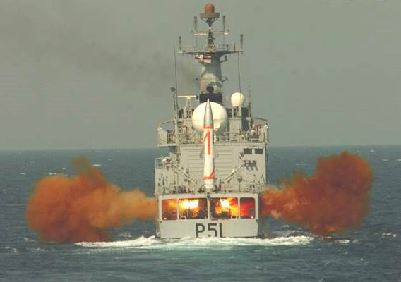 正在發射“丹怒什”導彈的印度海軍護衞艦