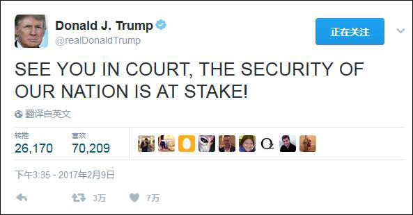 上週六,總統特朗普在推特里寫到:“這個所謂的法官的意見,讓執法工作無法在我國開展,這太荒謬了,我一定會推翻這個判決!”這是對聯邦地區法院法官詹姆士·羅巴特的嘲諷,因為他宣佈暫停執行總統的一份行政命令,這份命令宣佈限制七個穆斯林國家的公民進入美國;而在嘲諷這位法官的同時,特朗普陷入了與法律為敵,與憲法為敵的險境。