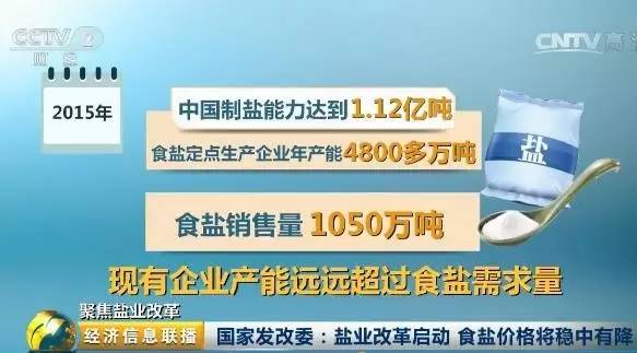趙辰昕表示,我國鹽資源極為豐富,製鹽產能相對過剩。2015年我國製鹽能力達到1.12億噸,其中,食鹽定點生產企業年產能4800多萬噸,但食鹽銷售量只有1050萬噸,現有企業產能其實遠遠超過食鹽需求量。而供應方面,改革後,食鹽定點生產企業進入流通和銷售領域,食鹽批發企業和食鹽定點生產企業跨區域經營,食鹽供應主體增加,流通供應渠道只會更趨多元。