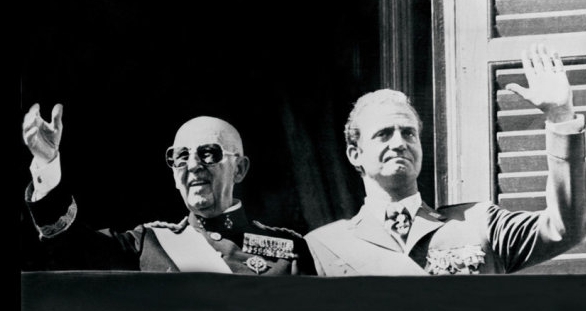 1975年,飽受爭議的西班牙“獨裁者”弗朗哥(左)和西班牙國王胡安·卡洛斯向民眾揮手。就在這一年弗朗哥逝世,西班牙開啓了民主化進程