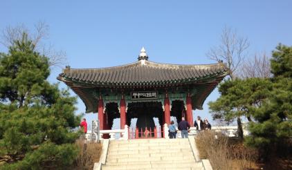很快來到了此行的第一站:臨津閣。這是為祈願朝鮮半島統一而於1972年修建的安保旅遊景點,位於三八線南端7公里處,是韓國普通老百姓能夠隨意出入的最接近朝鮮的地方,到DMZ地區韓國民眾就不被允許進入了。