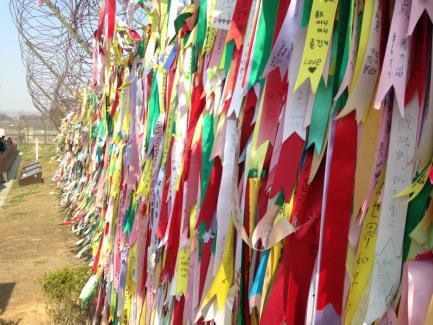 因為朝鮮戰爭造成了南北大量家庭的破碎,因此每年都有很多離散親屬到這裏來面對故鄉祭拜,寄託相思之情。小翻譯給我介紹了在臨津閣一直循環播放的歌曲《失去的三十年》,這首由韓國著名音樂家創作的歌曲如泣如訴,悠揚悽婉,不停地在遊人耳邊迴響,讓人切身感受到和親人分離的巨大痛苦。