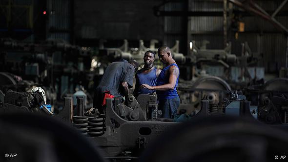 資料圖:哈瓦那一個車間檢修從中國進口的火車頭零部件