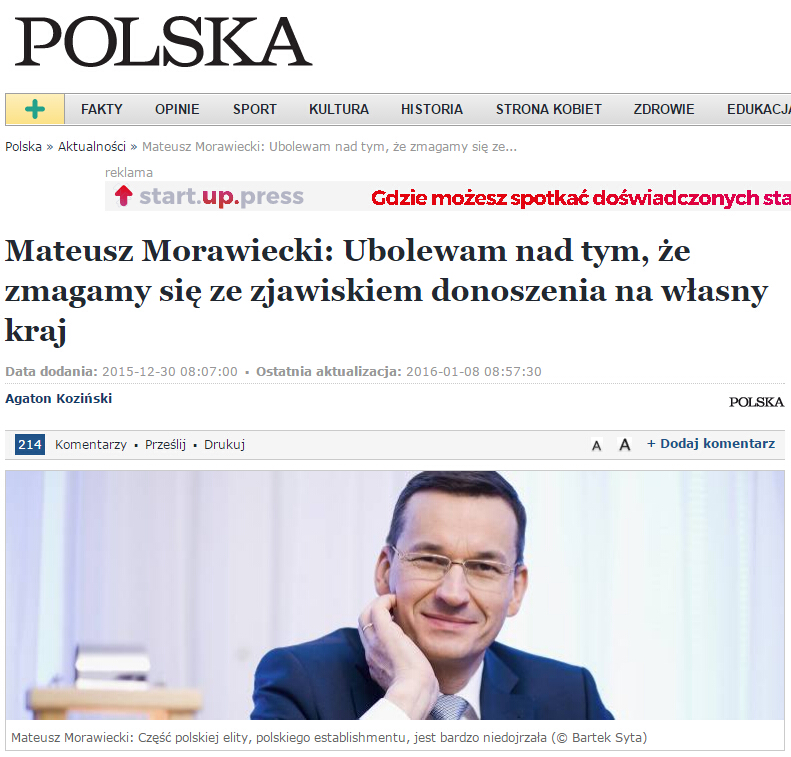 2016年12月8日的一篇文章則以“波蘭是否會追隨中國模式:莫拉維茨基副總理參照中國經濟學家林毅夫的觀點是好的,但如果導致照搬中國則不妥”為標題進行報道。