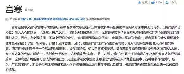讀到這裏,不知道有沒有眼尖又有實踐精神的讀者,會到某度裏搜索一下“宮寒”。