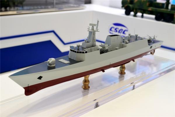 “中國防務”展區拍攝的3000噸級導彈護衞艦模型