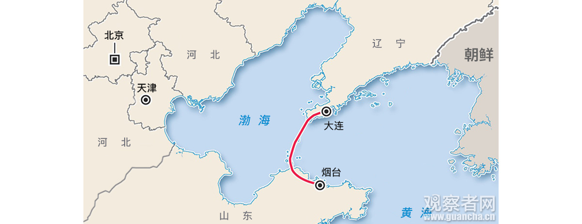 “渤海經濟圈之所以難以像珠三角、長三角那樣,形成連續、統一的經濟圈,實現區域經濟一體化發展,主要原因是環渤海南北兩岸相隔,成為交通死角。”王夢恕表示,從煙台到大連的直線距離大約是170公里,乘船需要六到八個小時,除了輪渡運輸,鐵路要多繞行1500公里,高速公路要多繞行1600公里。