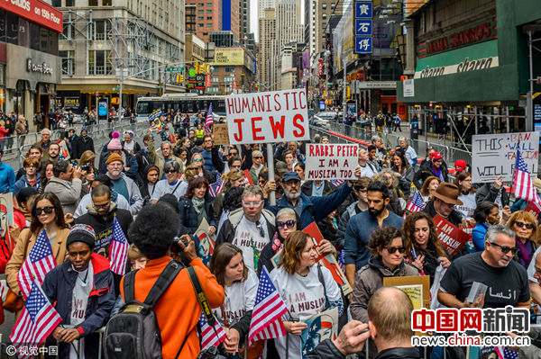 當地時間2月19日,紐約民眾參加“我也是穆斯林”遊行,支持穆斯林羣體,抗議特朗普政府移民政策。
