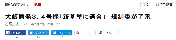 【觀察者網綜合】據日本朝日新聞網22日報道,日本原子能規制委員會召開例會,會議審議了關西電力公司大飯核電站3、4號機組(位於福井縣)安全情況,委員會認為其符合新安全標準的“審查書案”,預計最快將於今夏重啓。