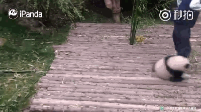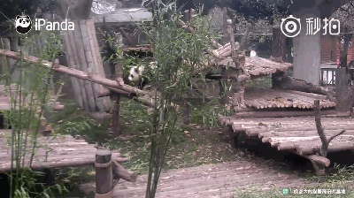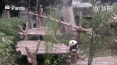 於是,我們就可以看到奇一寶寶邁着它的小短腿,吭哧吭哧地爬過了小木橋,爬下了兩層木架,跨越千山萬水,來到了奶爸的身邊……
