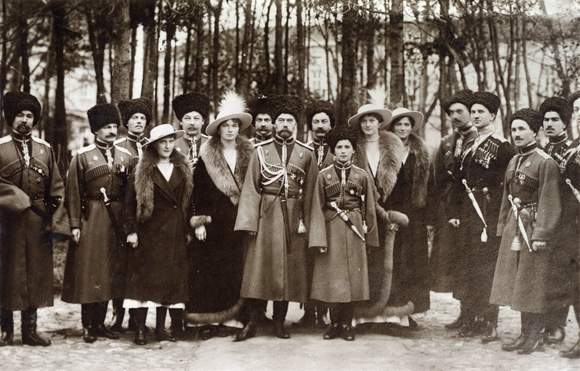 哥薩克人與帝制俄國皇室合影,最中間者為末代沙皇尼古拉二世