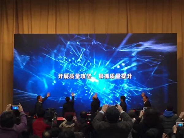 23日上午10時38分,國家質檢總局局長支樹平、浙江省副省長朱從玖、台州市委書記王昌榮等輕輕觸摸3D視頻啓動屏,“開展質量攻堅,狠抓質量提升”的攻堅口號赫然在目,全場響起熱烈掌聲。