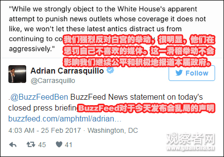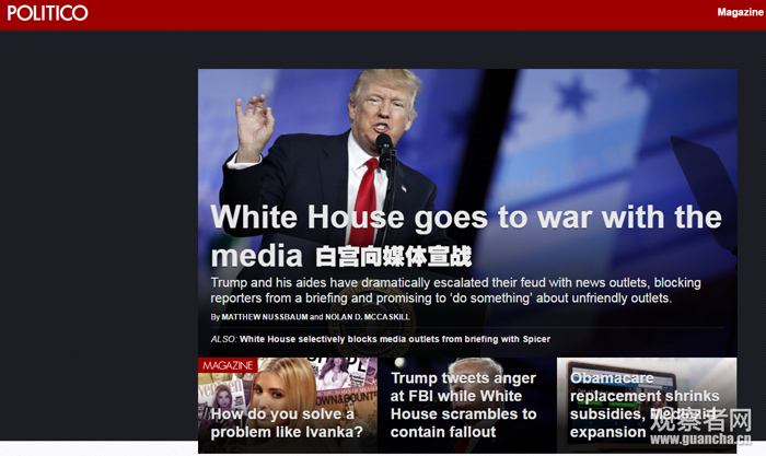 享受白宮“特殊待遇”的主流媒體有:《紐約時報》、美國有線電視網(CNN)、Buzzfeed、《洛杉磯時報》和《政治》等。