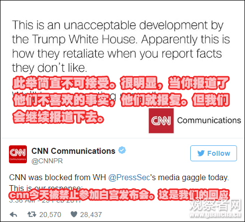 CNN公關部斥責白宮“報復”。