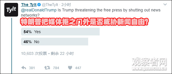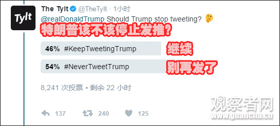 在特朗普推特評論區,有賬號發起了即時調查: