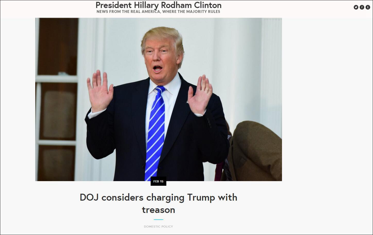 在特朗普就任美國總統後,民主黨和希拉里的支持者大失所望,除了對特朗普的政策進行抗議,上街遊行之外,還有人辦了一個網站,起名為:“希拉里·克林頓總統:一個真實的美國,一個主要族羣説了算的美國”。