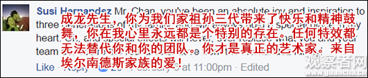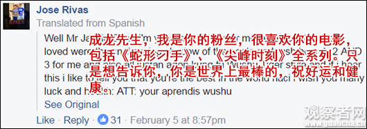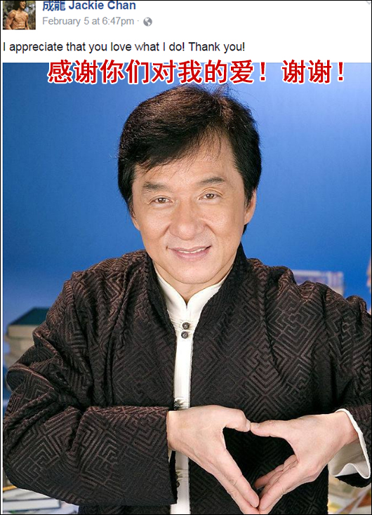據觀察者網查詢,成龍在臉書上粉絲有6500萬,是微博2800萬粉絲的3倍。