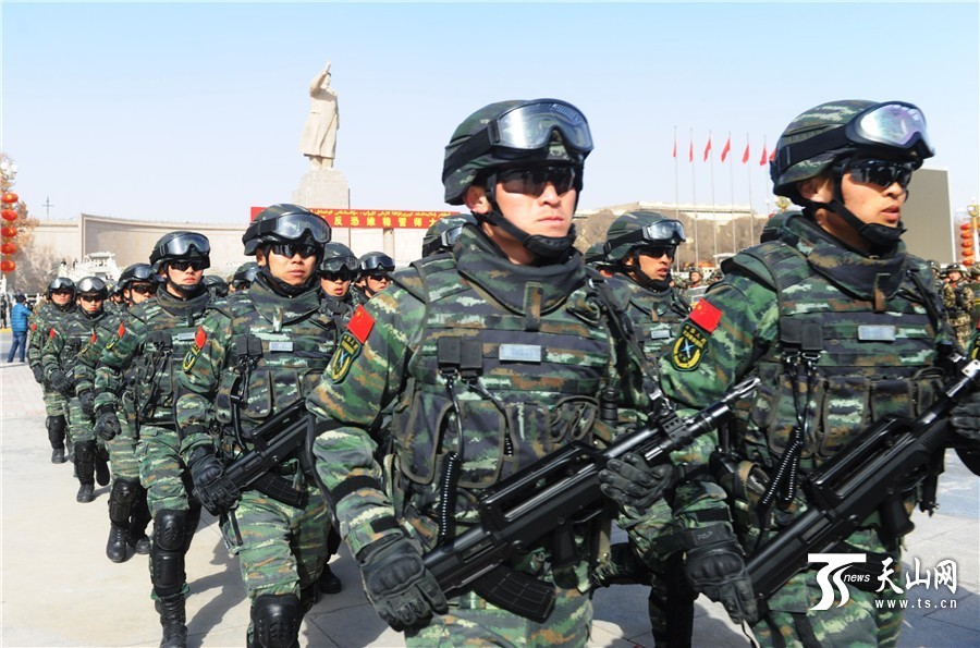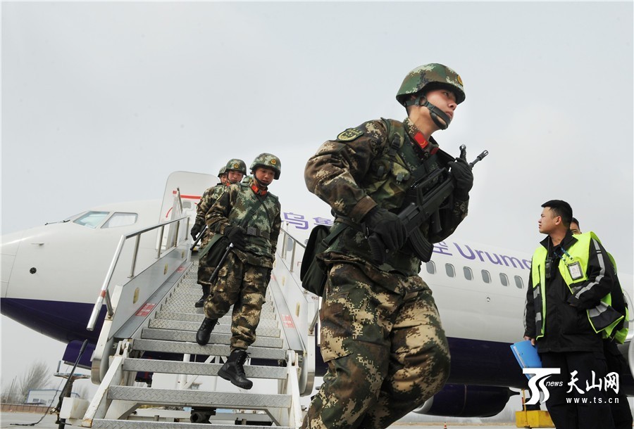 當天下午,赴和田、喀什、阿克蘇等地執行反恐維穩任務的武警官兵均已按要求到達指定位置,開始執行反恐任務。
